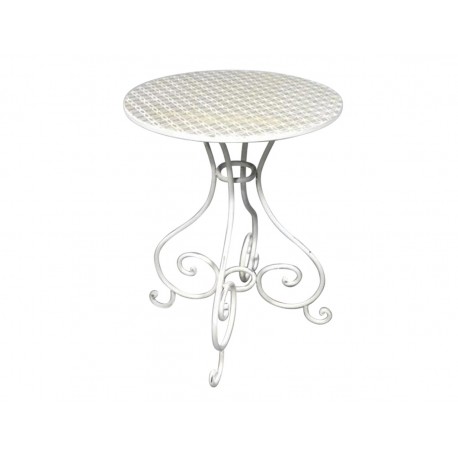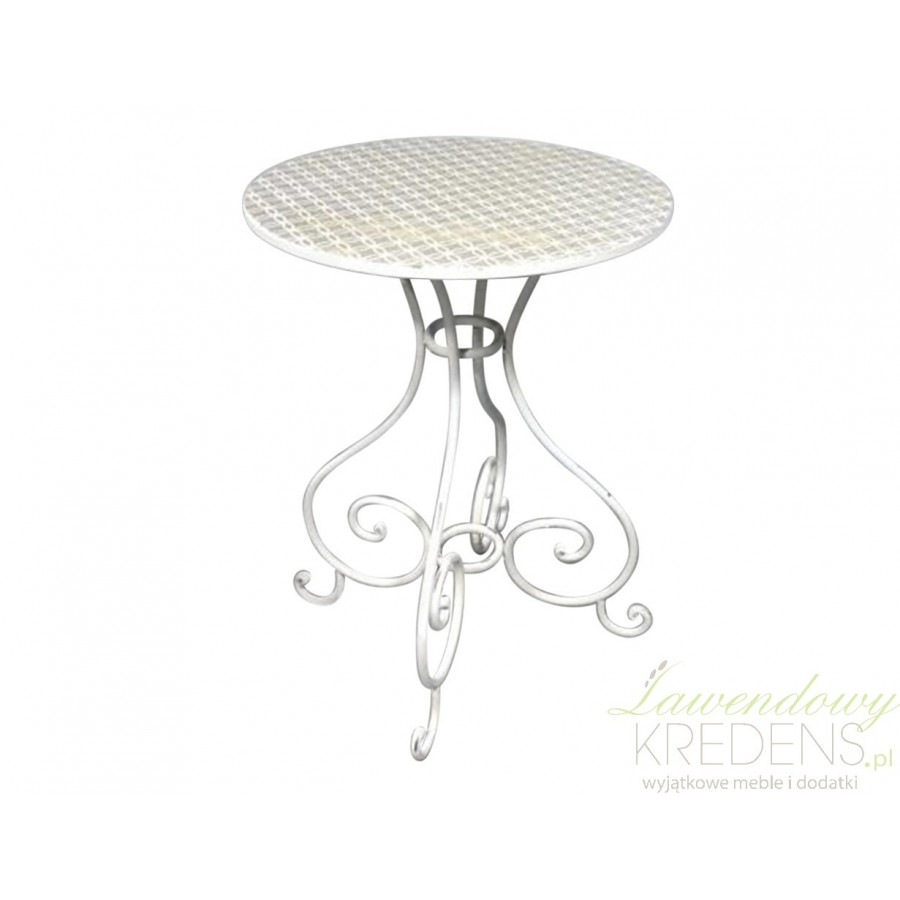 Z gracją wyprofilowany stolik w stylu prowansalskim, z okrągłym, metalowym blatem, idealny na podwieczorek!