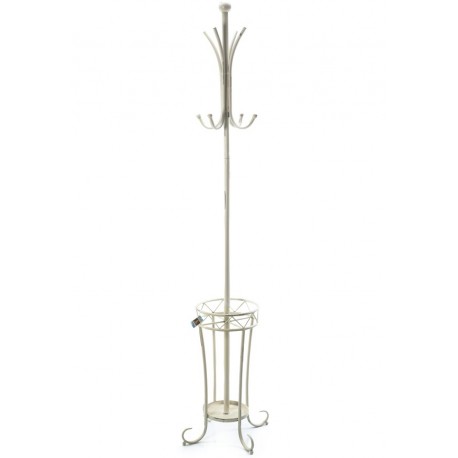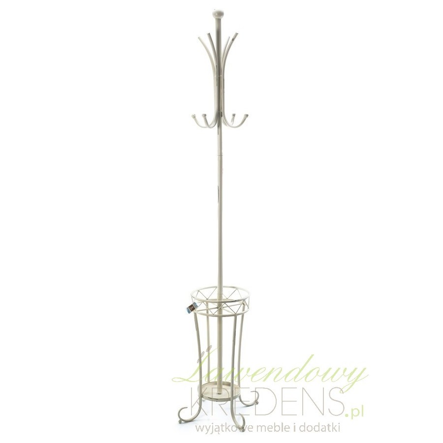 Klasyczny wieszak stojący, z miejscem na okrycia wierzchnie i parasole. Całość w stonowanym kolorze ecru!
