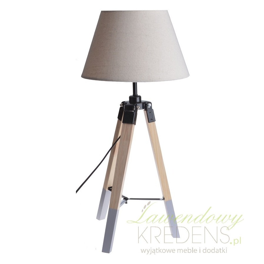 Świetnie wpisująca się w styl skandynawski lampa stojąca, której podstawa przypomina prosty statyw na trzech nogach!