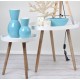 Urokliwy stolik w stylu skandynawskim który może sprawdzić się jako stolik nocny czy jako stolik kawowy. Wyższa krawędź wokół okrągłego blatu zabezpiecza przed spadnięciem rzeczy ze stolika, jednocześnie będąc elementem charakterystycznym całej konstrukcji.