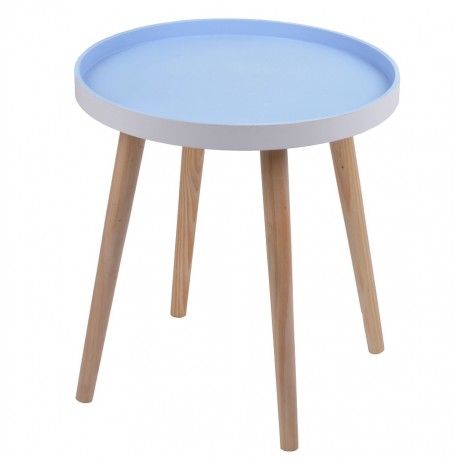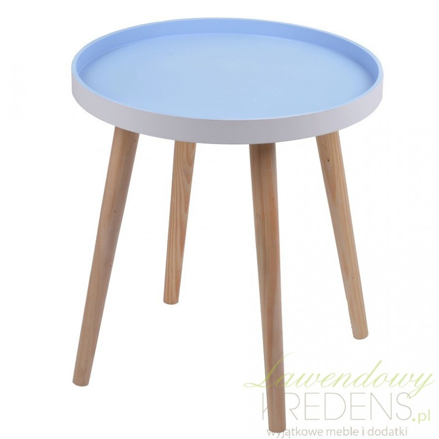 Prezentujemy stoliki skandynawskie na czterech nogach o okrągłym blacie w kolorze niebieskim. Jego drewniana powierzchnia świetnie oddaje klimat północnych rejoów Europy, bez problemu komponując się także z innymi stylami. Prosta forma i wykońćzenie to podwójny plus, który sprawia, że meble skandynawskie są hitem ostatnich lat!