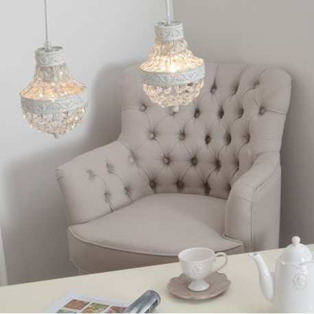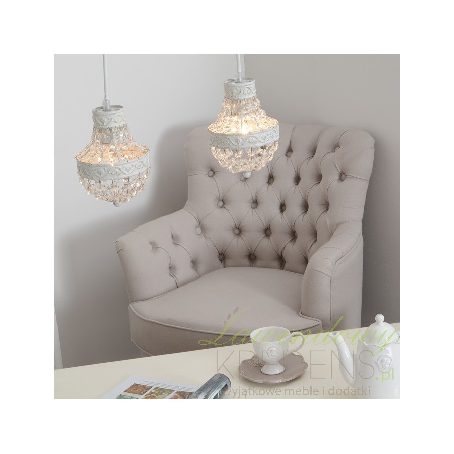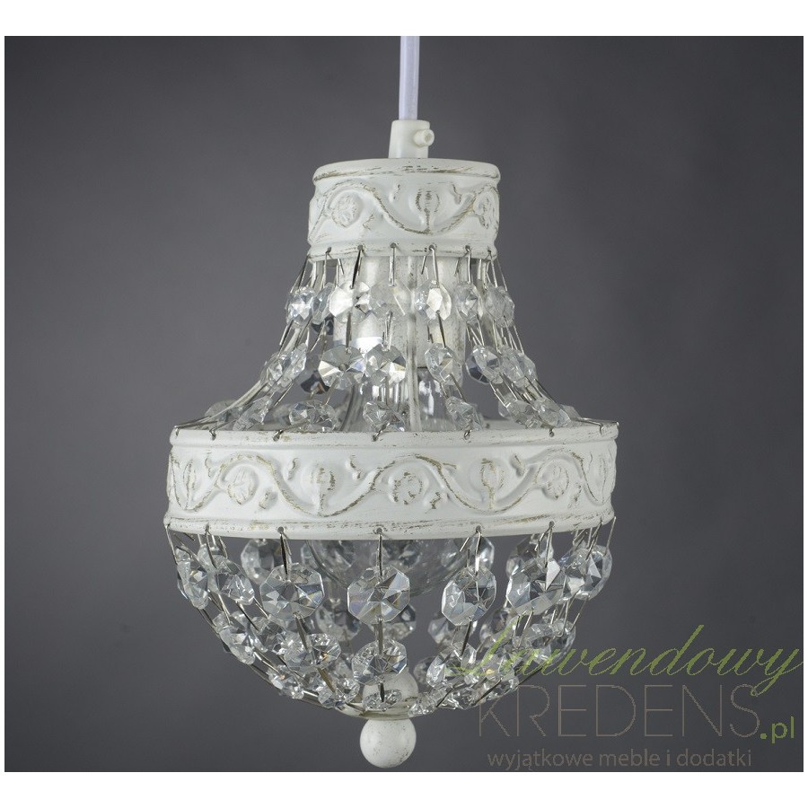 Cudownie prezentująca się lampa z kryształkami, które gdy zapalamy światło rozpoczynają magiczny taniec po naszym wnętrzu, tworząc bajkową atmosferę! Wypełniając wolne przestrzenie między przecieranymi powierzchniami, kryształki sprawiają, że lampa Szabby Chic prezentuje się niezwykle bogato i ekskluzywnie!