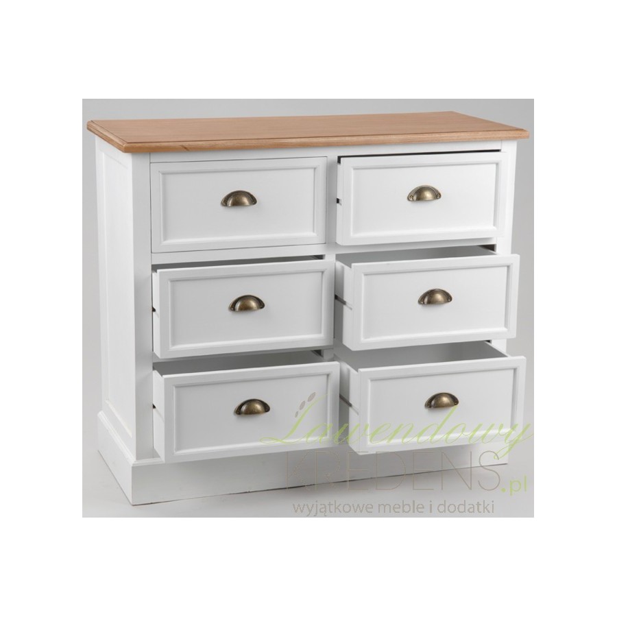 Ekskluzywna komoda prowansalska z pięknym, naturalnej barwy drewna blatem i pojemnymi szufladami!