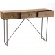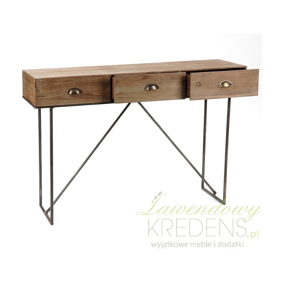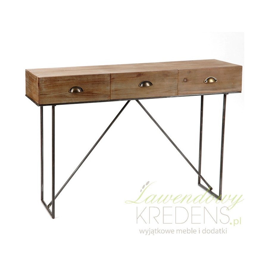 Wsparta na metalowych prętach konsola loft to konsola drewniana z trzema jednakowej wielkośći szufladami wykończona tzn. aptekarskimi uchwytami. Jej surowy charakter wynikający z zastosowanych materiałów i minimalistycznych dodatków idealnie wpisuje się w trend stylu loftowego. Idealna zarówno do sypialni, gabinetu, a także jako biurko!