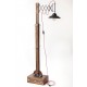 Ręcznie wykonana lampa industrialna z połaczenia jasnego drewna i surowo wyglądającej stali z widocznymi, kolorowymi kablami!