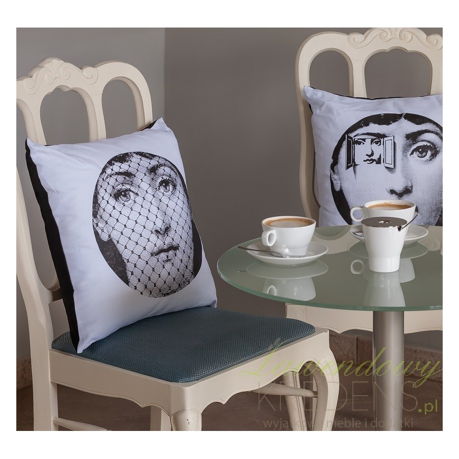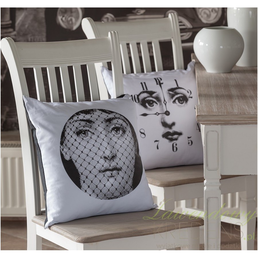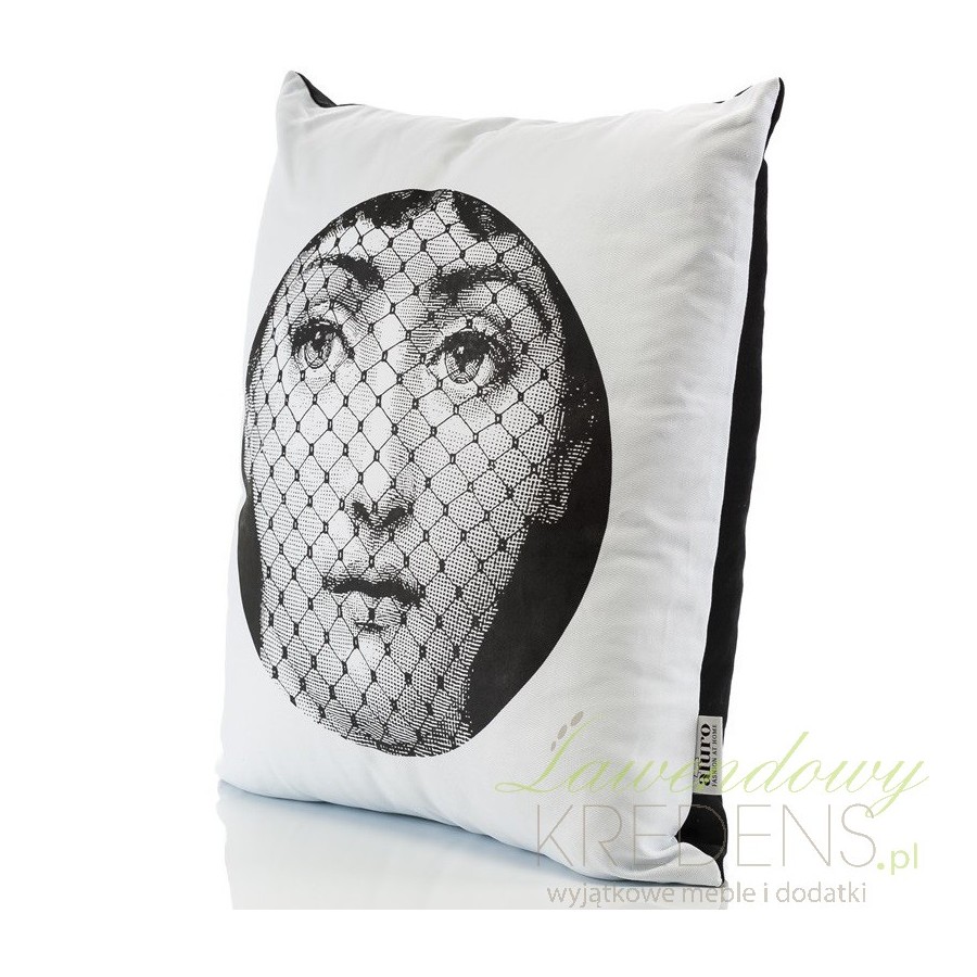 Wygodne i proste w czyszczeniu poduszki ozdobne od firmy Aluro, to kompozycja czarno-białej poszewki z zamkiem błyskawicznym i wkładu odpornego na odkształcenia mechaniczne. Bawełniana poduszka Aluro na frontowej powierzchni posiada nastrojowy nadruk kobiecej twarzy przesłoniętej delikatną, tkaną woalką!