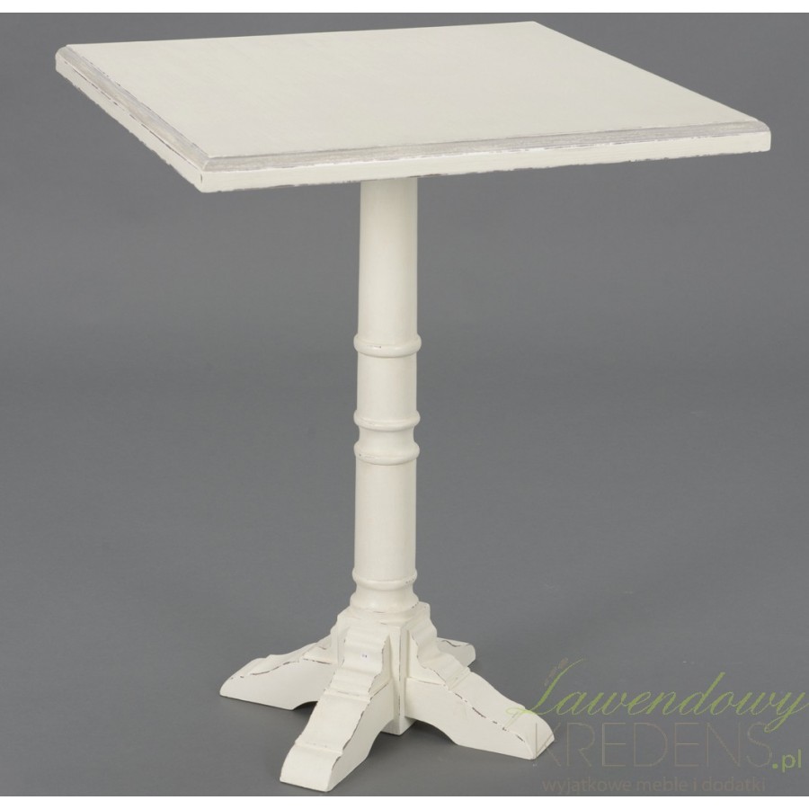 Wyjątkowo poręczne i ustawne stoliki Shabby Chic to białe meble w stylu francuskim, ktore doskonale sprawdzą się podczas spotkań ze znajomymi czy popołudniowego odpoczynku przy filiżance herbaty. Stoliki Shabby Chic posiadają kwadratowy blat oparty o jedną nogę na planie koła z rozchodzącą się podstawą. Całość została niebanalnie postarzana i wystylizowana!