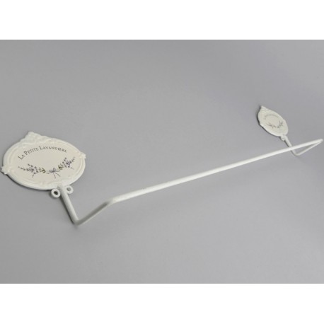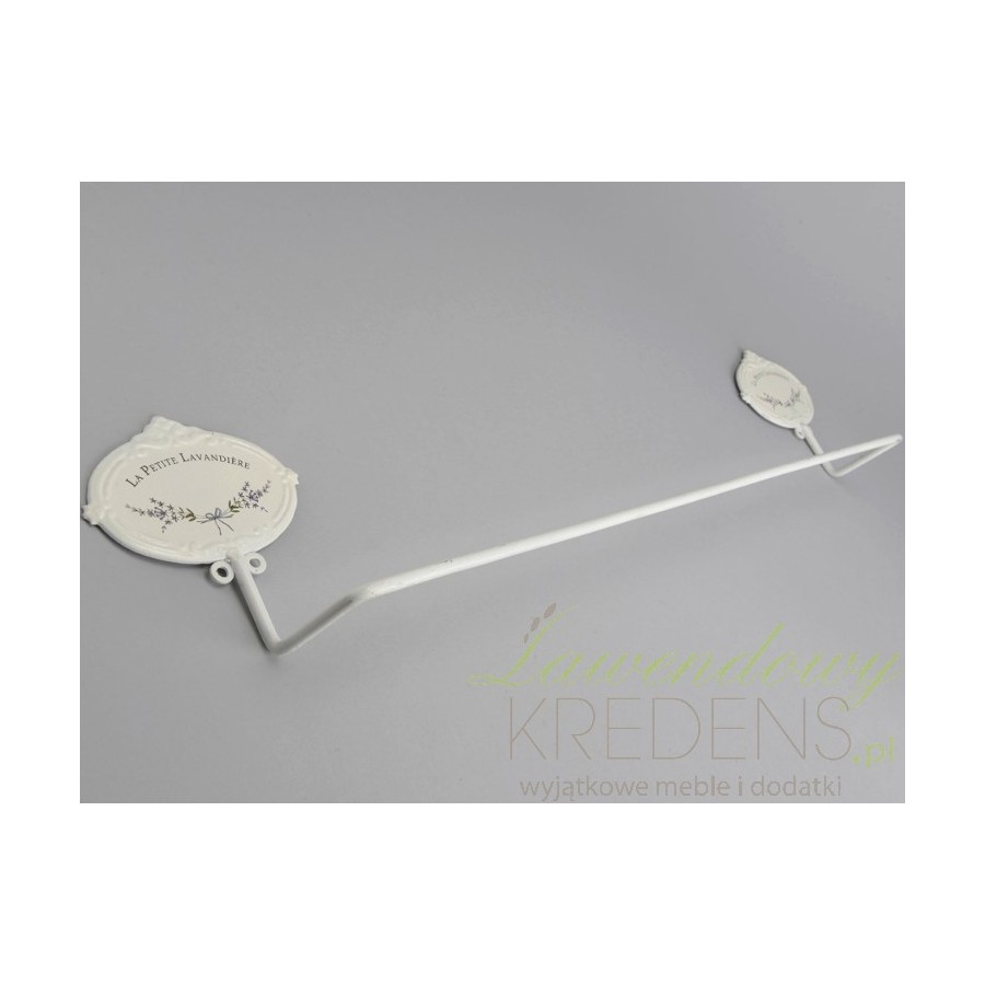 Stabilny, wsparty na dwóch metalowych tabliczkach z lawendą wieszak na ręczniki w klasycznym, białym kolorze! Wspaniały!