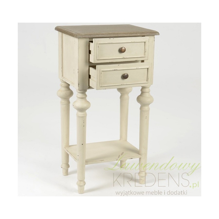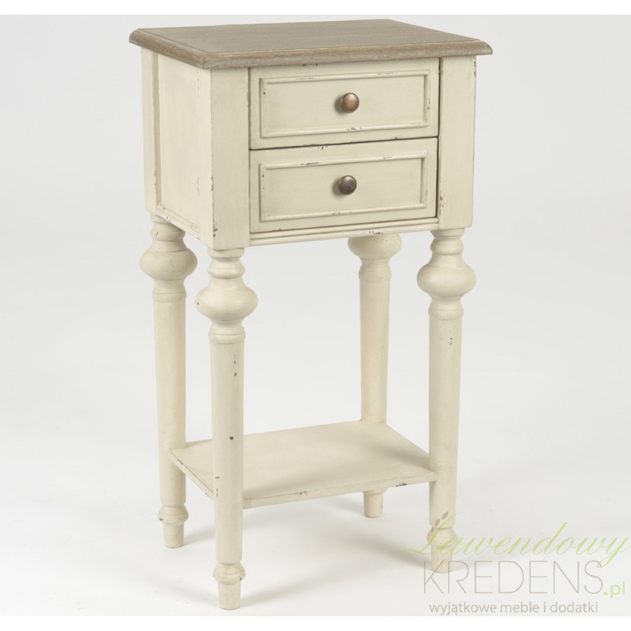 Magiczny stolik w stylu prowansalskim z dwiema umieszczonymi w pionie szufladkami i dodatkową półką na dole!