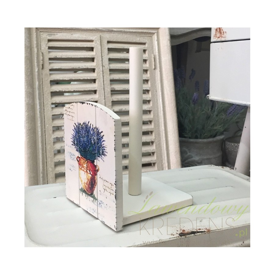Lubisz oryginalne i stylowe dodatki do kuchni, a jednocześnie styl prowansalski jest Ci bliski? Specjalnie dla Ciebie prezentujemy stojak na papier kuchenny, który dzięki drewnianej tabliczce z motywem lawendy i delikatnym zadrapaniom będzie się wspaniale prezentował na Twojej półce!