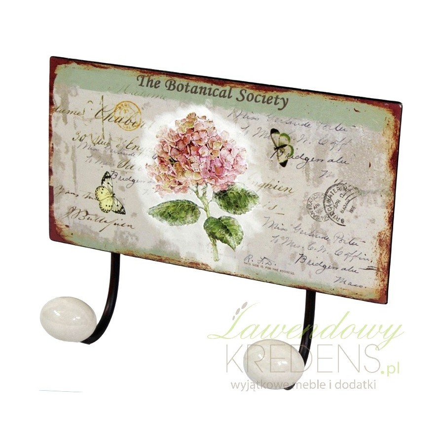 Doskonały wieszak prowansalski z dwoma uchwytami zakończonymi porcelanowymi kuleczkami, które chronią ubrania przed podarciem! Wieszaki ścienne posiadają dekoracyjną tabliczkę z kolorowym motywem kwiatowym wśród napisów imitujących kartkę pocztową i malutkich latających motylków!