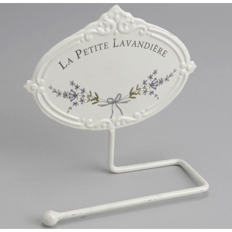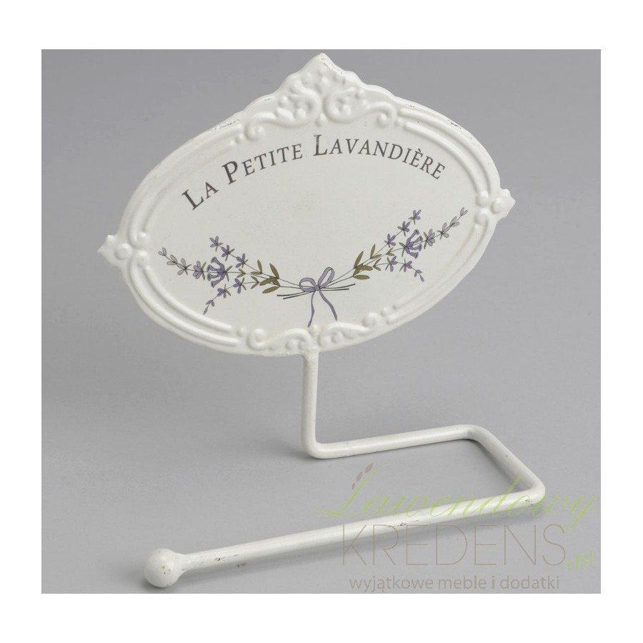 Bardzo gustowny i stylowy wieszak na papier toaletowy, prezentujący lawendowe dekoracje do mieszkania w styli prowansalskim. Efektownie wyglądające białe wieszaki ozdobione zostały delikatnymi uwypukleniami i pięknymi, kwitnącymi gałązkami lawendy.