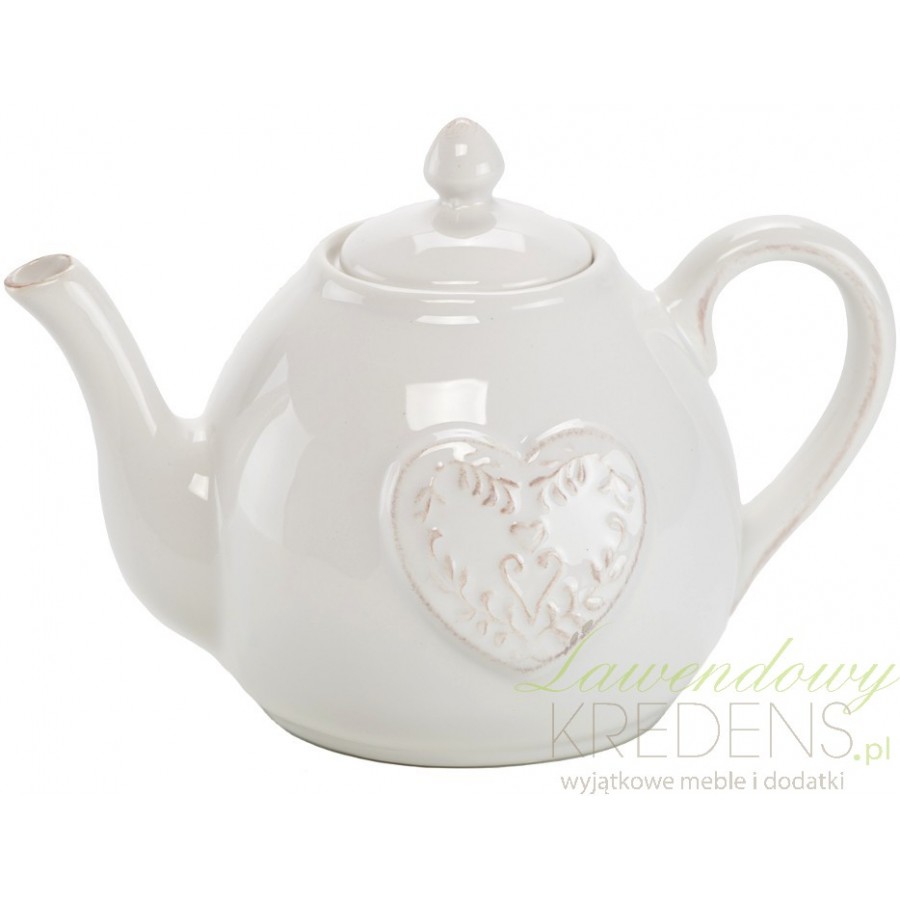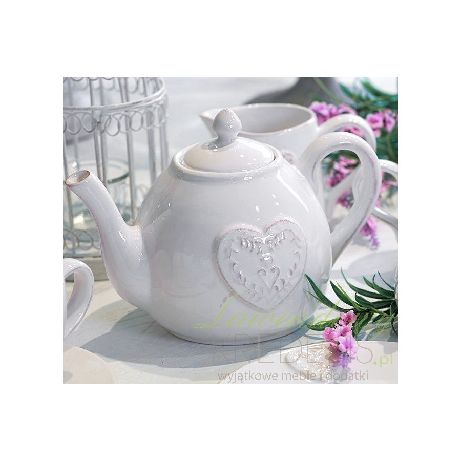 Gustowny dzbanek w stylu prowansalskim z dużym, wygodnym uchem i dopasowaną pokrywką. Doskonały dla osób, ktore cenią praktyczne i piękne dodatki do kuchni i pokoju. Dzbanek prowansalski w klasycznym kształcie znajdzie zastosowanie zarówno podczas porannych sniadań jak i popoludniowych deserowych chwil! Motyw serca na powierzchni doskonale dopełnia stylu!