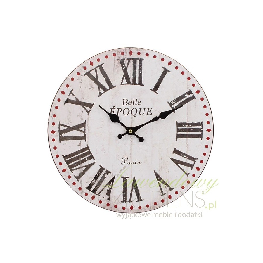 Zegar francuski z okrągłą, przejrzystą tarczą, która pozwoli bezbłędnie odczytać wskazówki! Biała tarcza z francuskim napisem i czerwonymi punktami wskazującymi minuty to kwintesencja francuskiego stylu i smaku. Zasilany pojedynczą baterią AA (zwykły paluszek)!