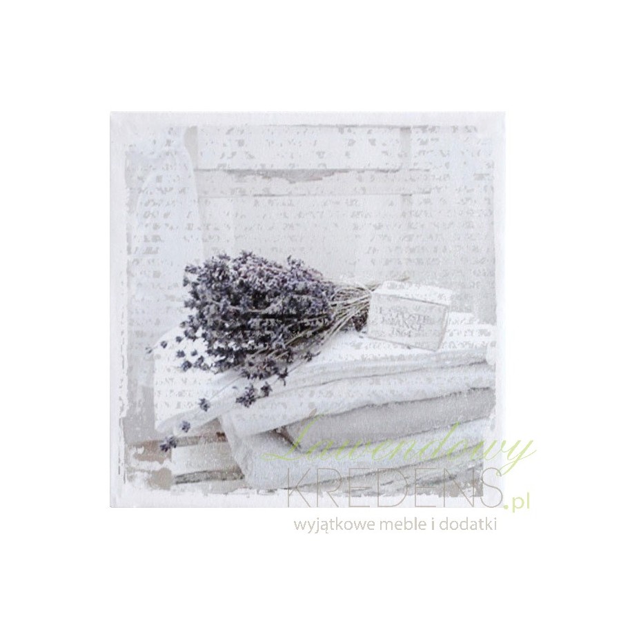Fantastyczny obrazek Prowansja dostępny od ręki dla upiększenia Twojego wnętrza! Utrzymany w jasnej tonacji kolorystyczne, ktorego centralnym elementem jest bukiet suszonej lawendy ułożony na komplecie białych reczników! Cudowny styl i aura!