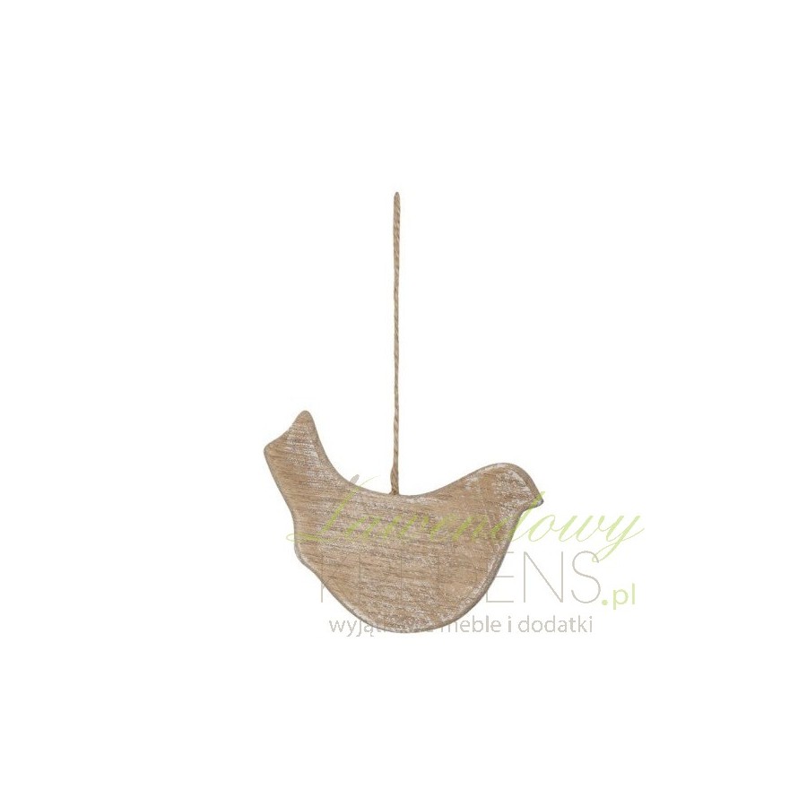 Bielona i przecierana zawieszka ptaszek na długim sznurku to mała, drewniana dekoracja, która sprawi radość dla oka i zmysłu estetyki! Piękne, a jednocześnie proste dekoracje w postaci zawieszki ozdobnej to wspaniały pomysł na drobny podarunek czy na umilenie wystroju wnętrza!