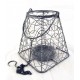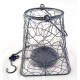 Szary lampion prowansalski ze szklanym naczyniem i podestem na świeczkę w środku, ozdobiony plątaniną drucików.