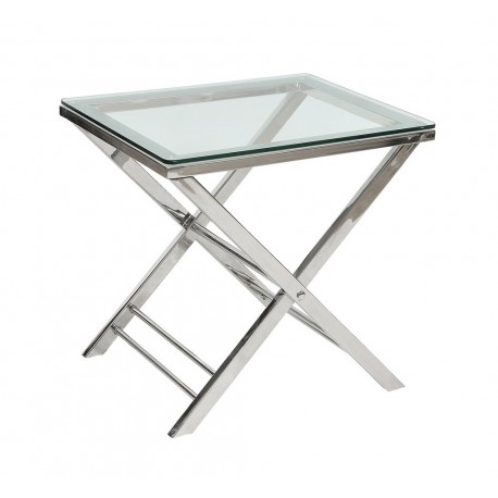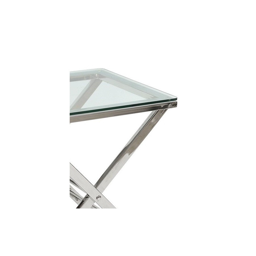 Niezwykle elegancki, nieduży stolik marki Belldeco. Nogi stolika wykonane są z polerowanego aluminium, natomiast blat stolika Deluxe wykonany jest z hartowanego szkła. Stolik zawdzięcza swą oryginalność nie tylko wysokiemu połyskowi metalowych nóg, ale także ich ułożeniu na krzyż. Stolik Deluxe ze szklanym blatem jest meblem stylowym i eleganckim, wykonanym z materiałów najwyższej jakości, dlatego też będzie idealnym wyborem także dla najbardziej wymagających klientów. Odświeży każde wnętrze dodając mu klasy i elegancji. Dzięki praktycznemu, srebrnemu kolorowi Stoliki Deluxe świetnie wyglądają z meblami w każdym odcieniu i kolorze.