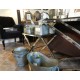 Bardzo elegancki stolik firmy Belldeco. Lśniące nogi stolika wykonane są z metalu, natomiast blat stolika wykonany jest z hartowanego szkła.