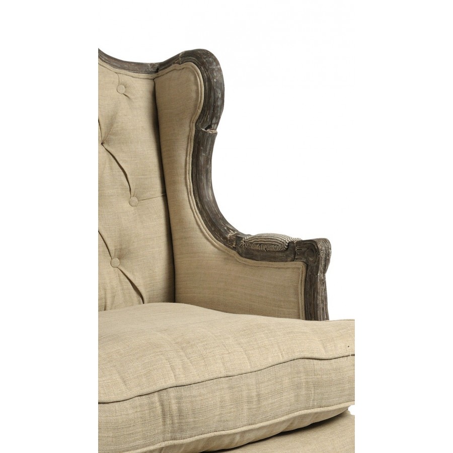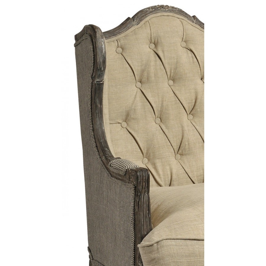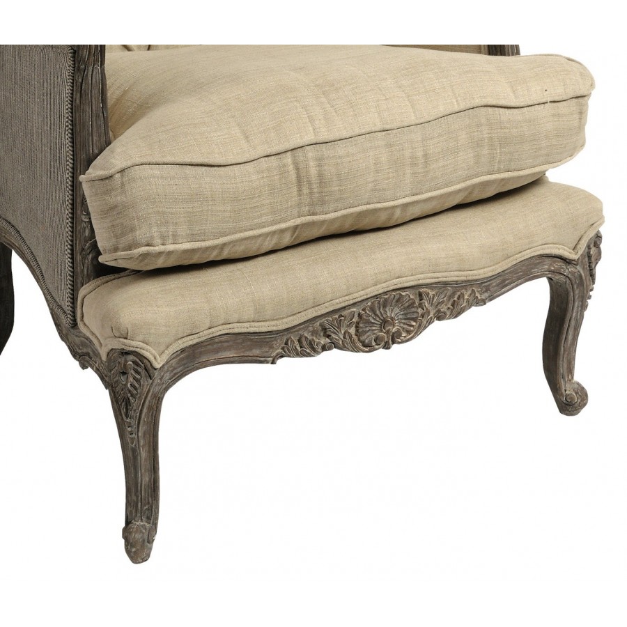 Fotele Bristol to stylowe meble prowansalskie Belldeco z drewna mangowego, obite lnem. Rama foteli jest ciekawie rzeźbiona, a oparcie pikowane.