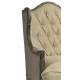 Przepiękny fotel Belldeco, którego kształt stylizowany jest na styl ludwikowski. Jego rama wykonana jest z niezwykle wytrzymałego drewna mangowego, natomiast obszycie fotela zrobione jest z naturalnego lnu. Poducha fotela obszyta naturalnym, beżowym lnem jest wypełniona pierzem i pianką syntetyczną dzięki czemu fotel jest szalenie wygodny. Obszycia na podłokietnikach oraz bokach fotela Bristol są w beżowo szare paski. Elegancji dodaje fotelowi pikowanie materiału na oparciu. Mangowe drewno z którego wykonany jest fotel jest pięknie rzeźbione i wykończone, na uwagę zasługuje przede wszystkim dolna część fotela, gdzie znajdują się śliczne rzeźbienia nawiązujące do motywów roślinnych. Nogi mają zaokrąglony i niezwykle dostojny kształt.