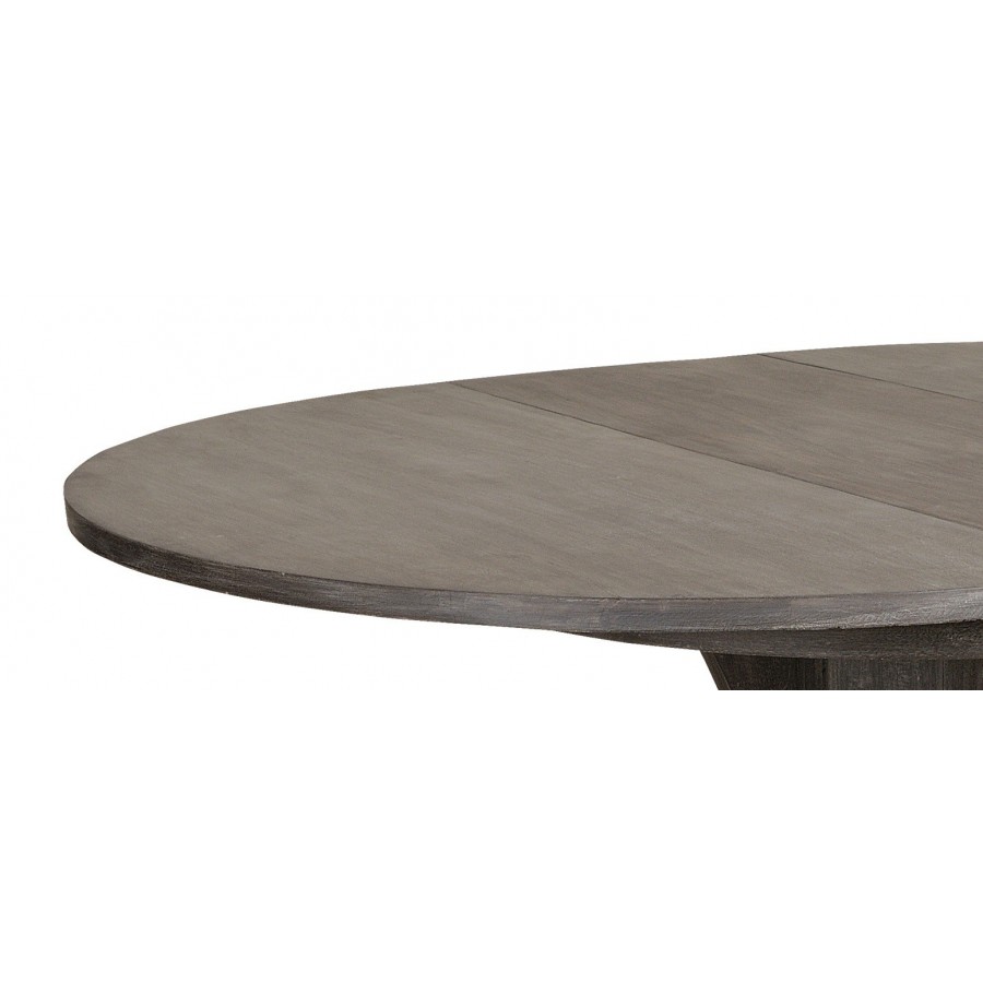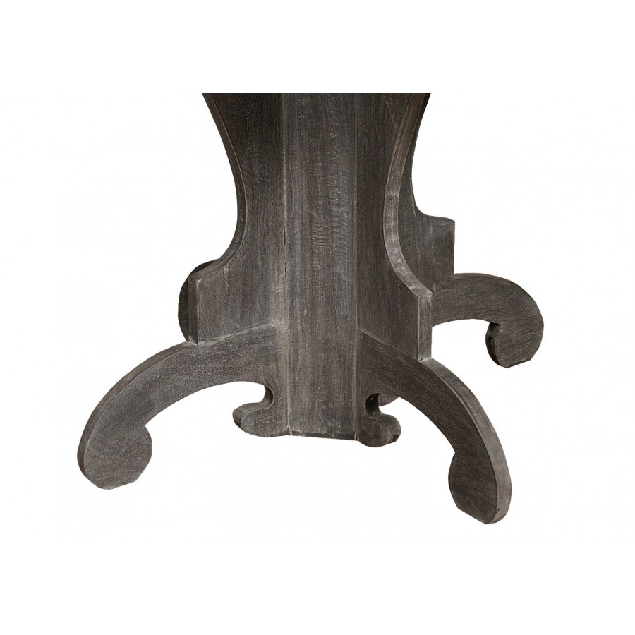 Rozkładany stół na jednej nodze firmy Belldeco wykonany z litego drewna mangowca. Stół jest celowo postarzany poprzez delikatne, białe przetarcia na całej jego powierzchni.