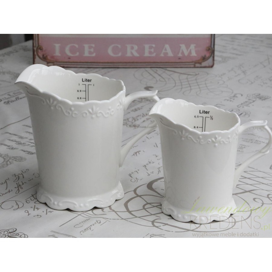Porcelanowy, półlitrowy dzbanek prowansalski z dobrze widoczną na białym tle miarką. Czaruje elegancją!