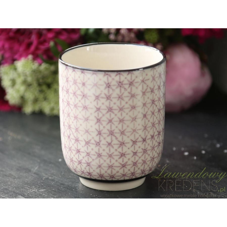 Niebanalne kubki z ręcznie malowanymi dekoracjami to wysokiej klasy ceramika w stylu skandynawskim marki Chic Antique, ceniona w wielu krajach na świecie. Prezentowane kubki skandynawskie posiadają niezaprzeczalny urok ukryty między jasno-różowymi, ręcznie wykonanymi wzorami, które przypominają połączone ze sobą gwiazdki.