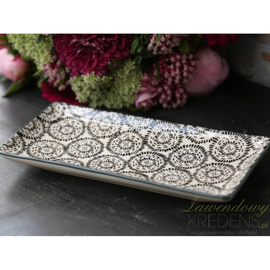 Podłużne talerze w stylu skandynawskim z kolekcji Unica marki Chic Antique z ciemnymi zdobieniami w kształcie okręgów!