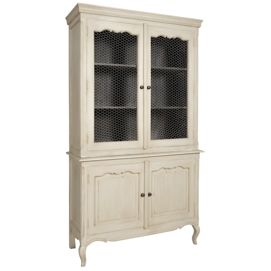 Biblioteka Belldeco w stylu prowansalskim wykonana z drewna mangowego. W górnych drzwiczkach biblioteki znajduje się metalowa siatka.