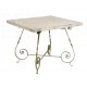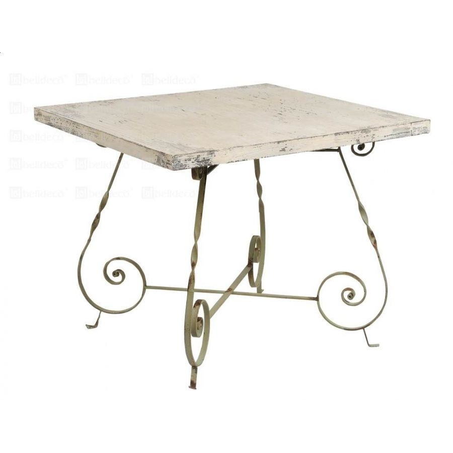 Metalowe, kwadratowe stoliki Luna marki Belldeco to urocze meble prowansalskie, pasujące nie tylko do ogrodów, ale także do wnętrz w stylu prowansalskim. Jego jasny blat jest celowo postarzany w stylu shabby chic, poprzez nieregularne przecierki do ciemniejszego koloru. Stolik ma cztery metalowe nóżki o bardzo ciekawym kształcie, które połączone są w dolnej części.