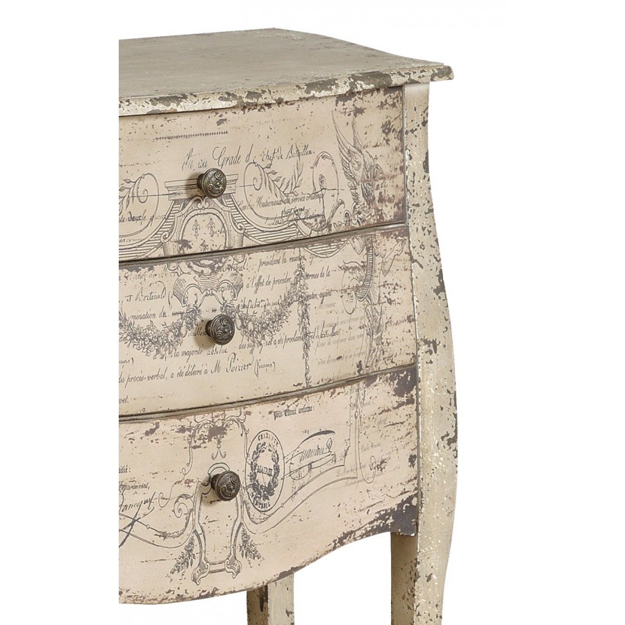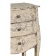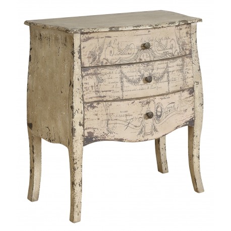 Postarzana komoda Belldeco w stylu prowansalskim, wykonana z drewna jodłowego. Na froncie komody Grigio znajdują się ciekawe nadruki, dzięki którym komoda jest niezwykle efektowna i oryginalna. Ma trzy szuflady otwierane małymi, metalowymi uchwytami. Komoda Grigio jest celowo postarzana poprzez liczne przecierki oraz imitacje zdarć farby. Nogi komody mają elegancki, lekko zaokrąglony kształt.