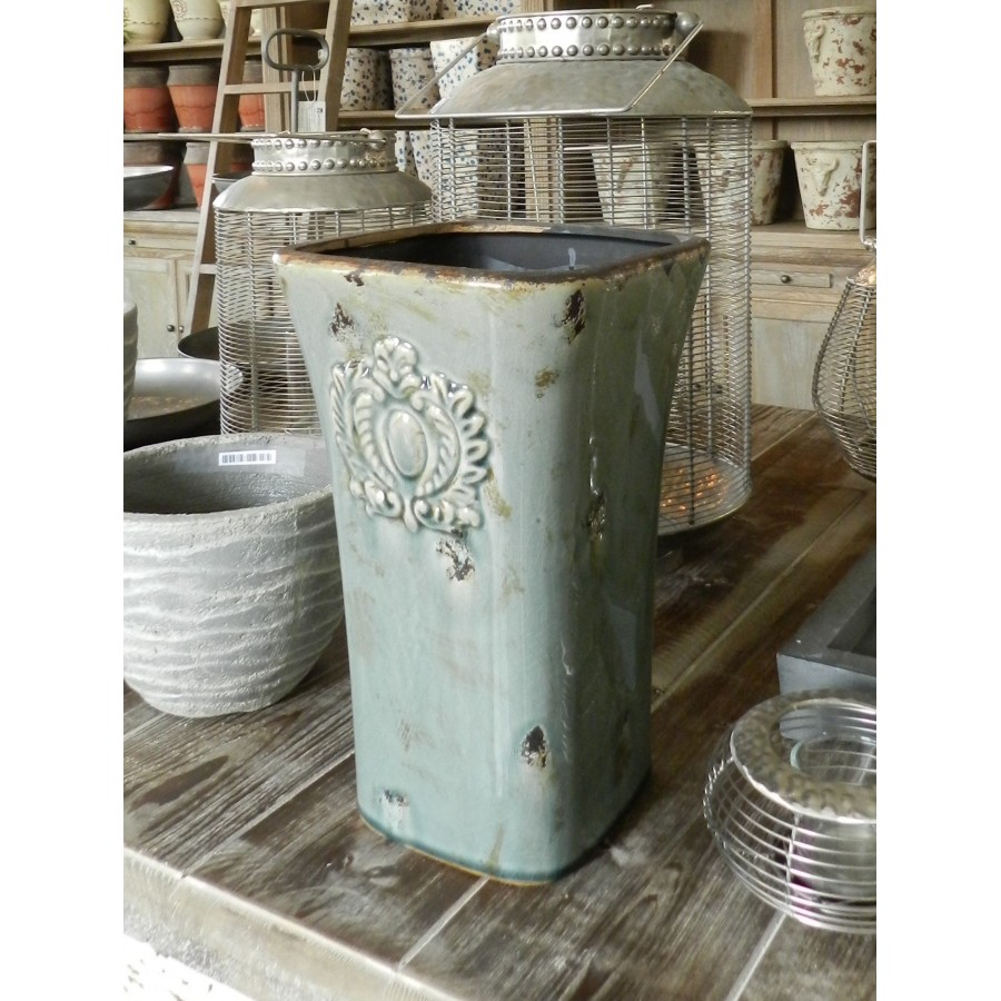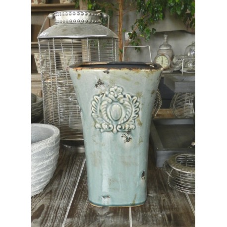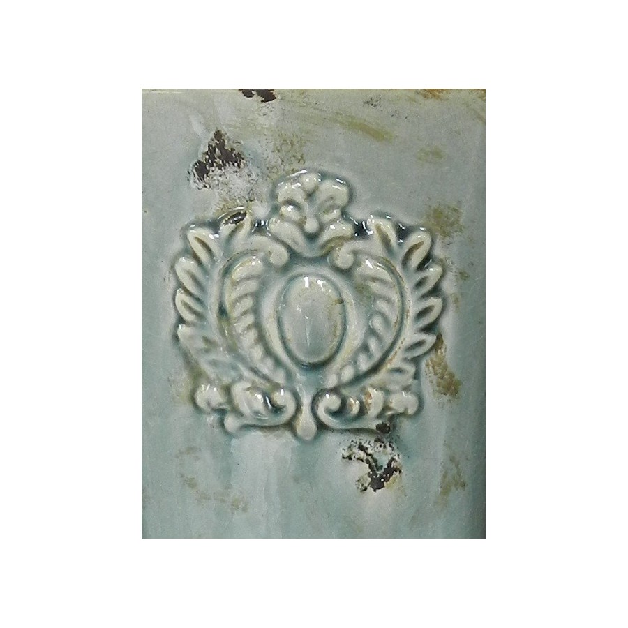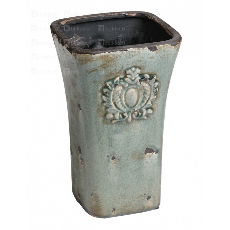 Bardzo oryginalny, szkliwiony wazon Belldeco z przepięknym, wypukłym dekorem. Wazon ma przepiękny kolor, na którym gdzieniegdzie widoczny jest rdzawy kolor oraz czarne przetarcia. Na całej powierzchni wazonu widoczne są delikatne, czarne spękania. Wnętrze oraz krawędzie wazonów i donic z serii Mokka jest czarne. Wazon ma ciekawy kształt, ponieważ rozszerza się ku górze, dzięki czemu każde kwiaty wyglądają w nim bardzo efektownie.