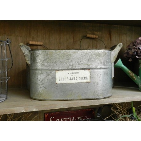 Wanienka Belle Jardiniere z ocynkowanej blachy to z jednej strony prowansalska osłonka na kwiaty, a z drugiej świetnie spisze się na przykłąd w roli wiaderka na drobne narzędzia służące do pracy w ogrodzie. Na wanienkach Belle Jardiniere znajduje się grafika stylizowana na styl prowansalski.