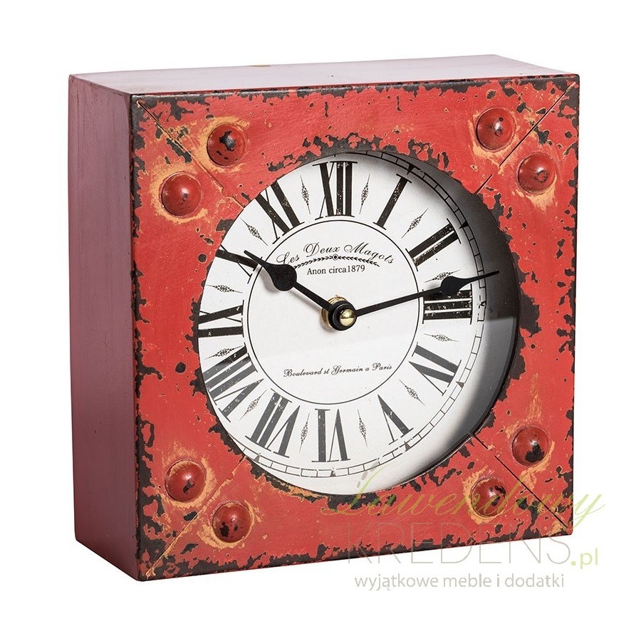 Kwadratowy zegar Belldeco z postarzeniami fantastycznie komponuje się z innymi dodatkami w stylu antycznym ale też industrialnym. Piękny czasomierz z białą tarczą wygląda jak zabtek prosto z galerii sztuki. Czerwona obudowa jest niewątpliwie cechą charakterystyczną zegara Belldeco, a przystępna cena pozwala cieszyć się tym okazem wszystkim wielbicielom dobrego designu. Nie zwlekaj, limitowana kolekcja zegarów Belldeco to piękne i praktyczne dodatki do ustawienia na komodzie lub nad kominkiem.