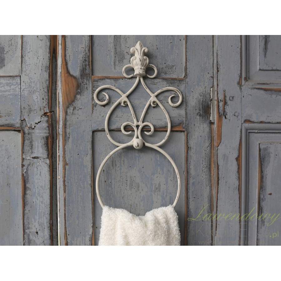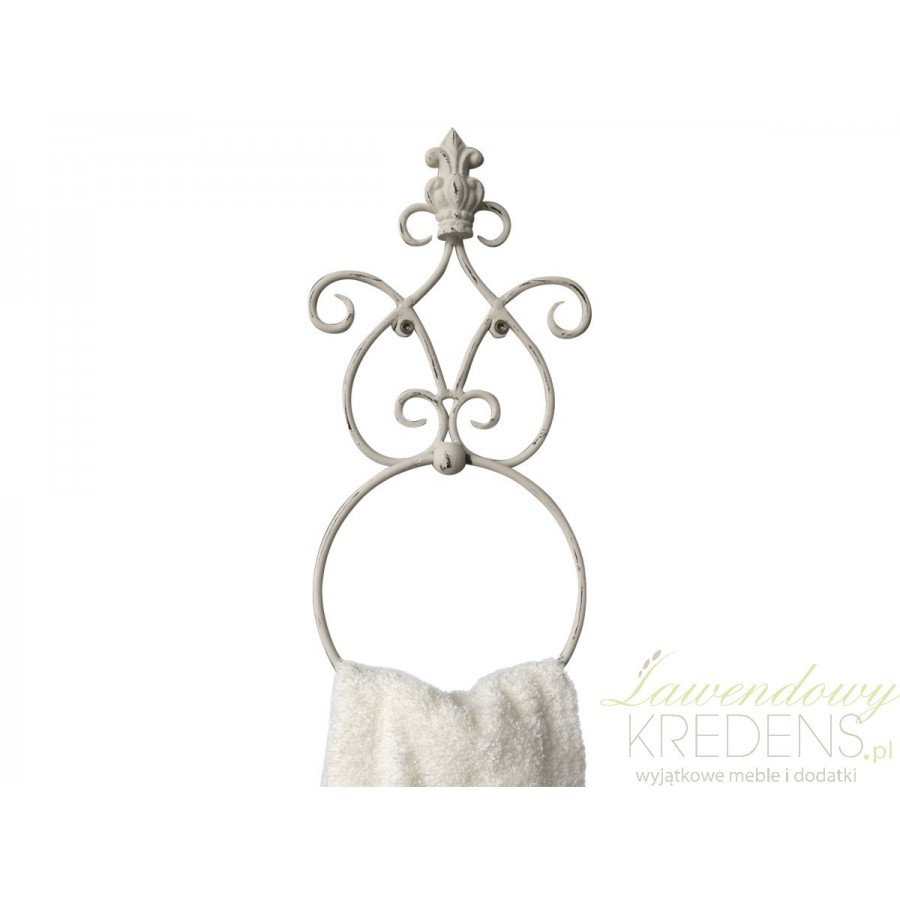 Wieszaki na ręczniki stanowią bardzo praktyczne, a przy tym miłe dla oka dodatki do łazienki. Finezyjny i postarzany wieszak na ręczniki firmy Chic Antique wykonany jest z metalu w kolorze białym. Ten elegancki wieszak ma okrągły kształt, a u góry posiada liczne zdobienia i małą koronę. Wieszak wprost stworzony dla królowe lub króla!