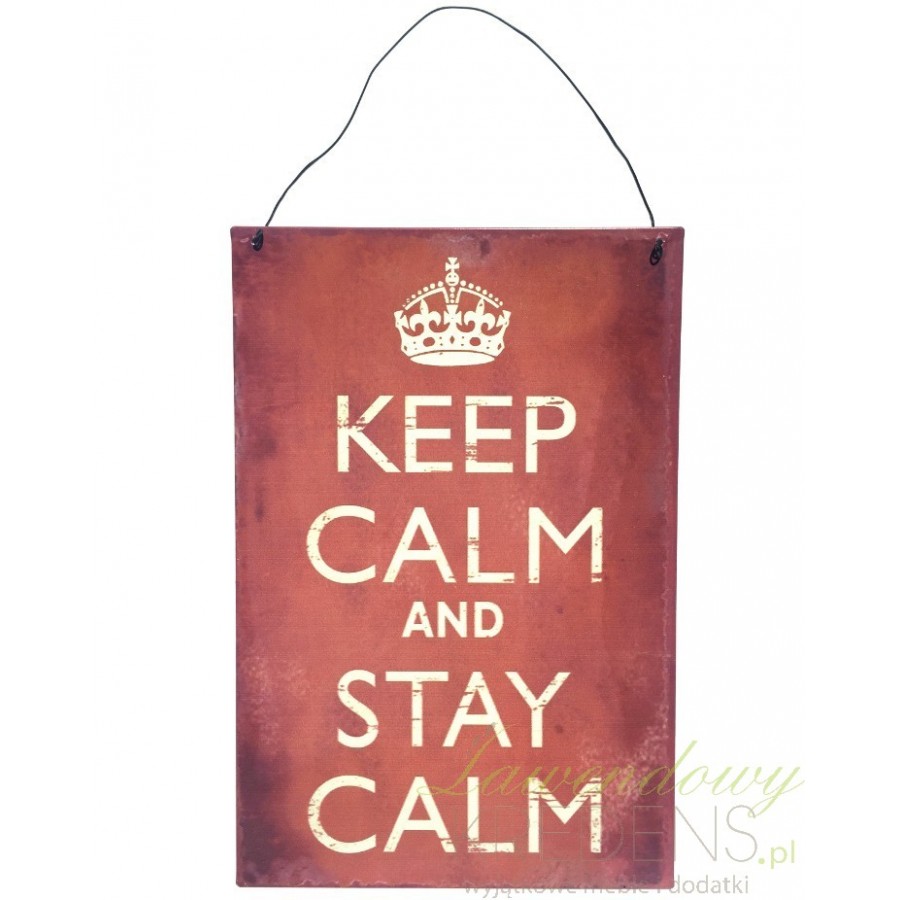 Retro obrazki to świetny pomysł na niecodzienną ozdobę mieszkania. Obrazki metalowe firmy Chic Antique mają czerwony kolor i jasny, duży angielski napis: KEEP CALM AND STAY CALM. Są postarzane i zawieszone na metalowym druciku. To nowoczesna i niebanalna dekoracja pokoju.