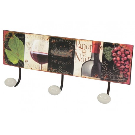 Potrójne wieszaki ścienne zakończone ceramicznymi gałkami z winnym motywem graficznym na metalowej tabliczce!