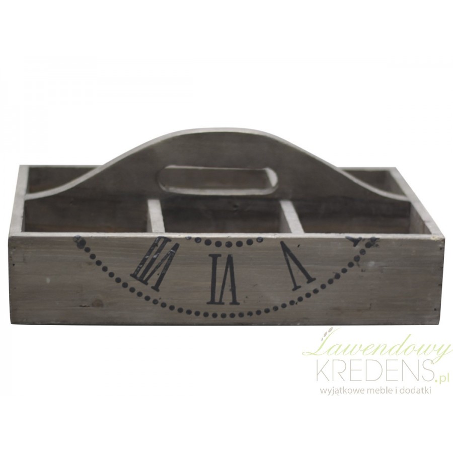 Jeśli lubisz nietypowe dodatki w styli prowansalskim w swojej kuchni to taca z przegródkami Chic Antique spełni wszystkie Twoje oczekiwania. Solidna, drewniana konstrukcja tacy z sześcioma przegródkami i stylową grafiką będącą fragmentem tarczy zegara z rzymskimi cyframi. Dzięki poręcznej rączce bez trudu przeniesiesz nawet najgorętsze napoje!