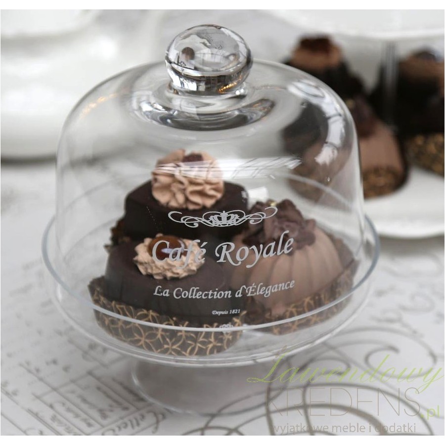 Szklana patera z kloszem oraz dużym napisem Cafe Royale na przodzie. Patera, dzięki której zaprezentujesz swoje smakołyki!