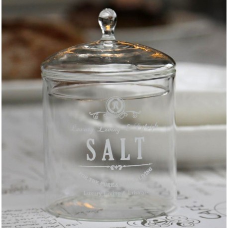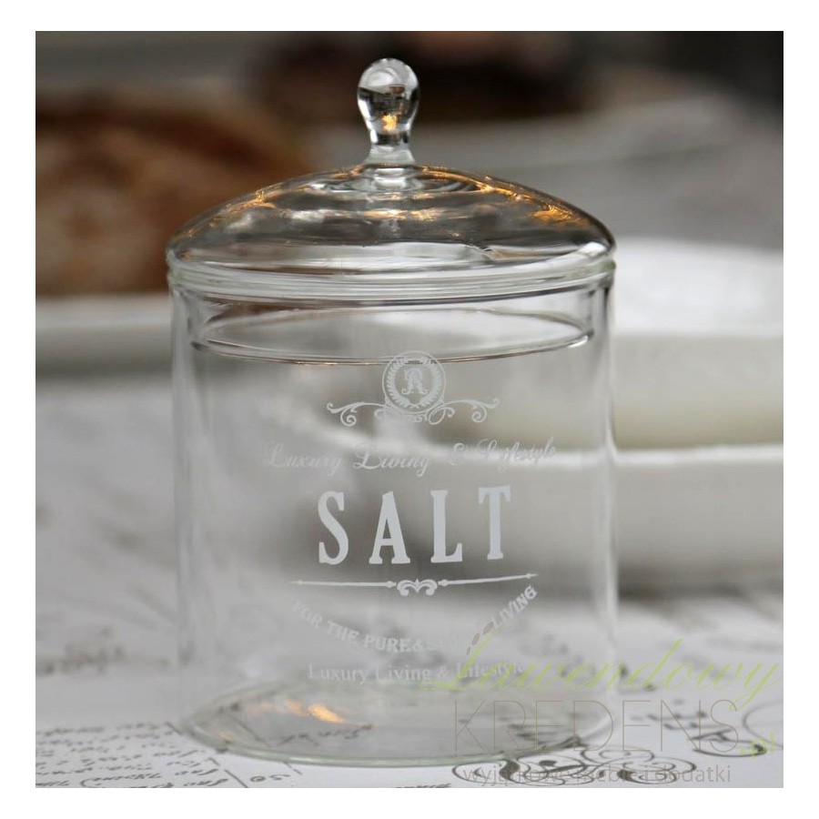 Sympatyczne pojemniki kuchenne to szklane pojemniki na sól w pokrywką, która posiada wygodny uchwyt. Chic Antique proponuje pojemniki z wieczkiem, aby sól bezpośrednio nie była narażona na wilgość i drobne zanieczyszczenia. Angielski napis SALT sprawi, że nie pomylisz już więcej cukru z solą i Twoje gotowanie stanie się o wiele łatwiejsze!