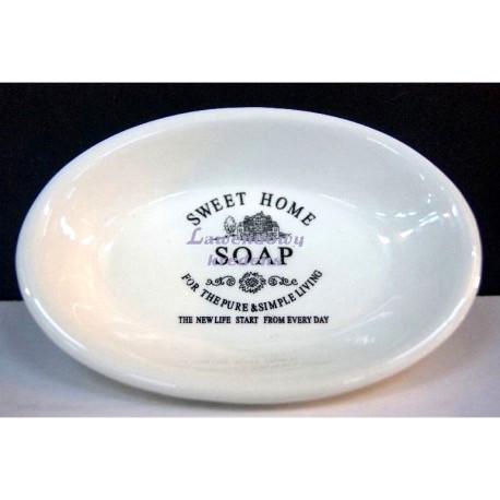 Kremowa mydelniczka z kolekcji ceramiki SWEET HOME to uroczy dodatek do łazienki. Na mydelniczce znajduje się czarny wzór oraz napis Sweet Home.