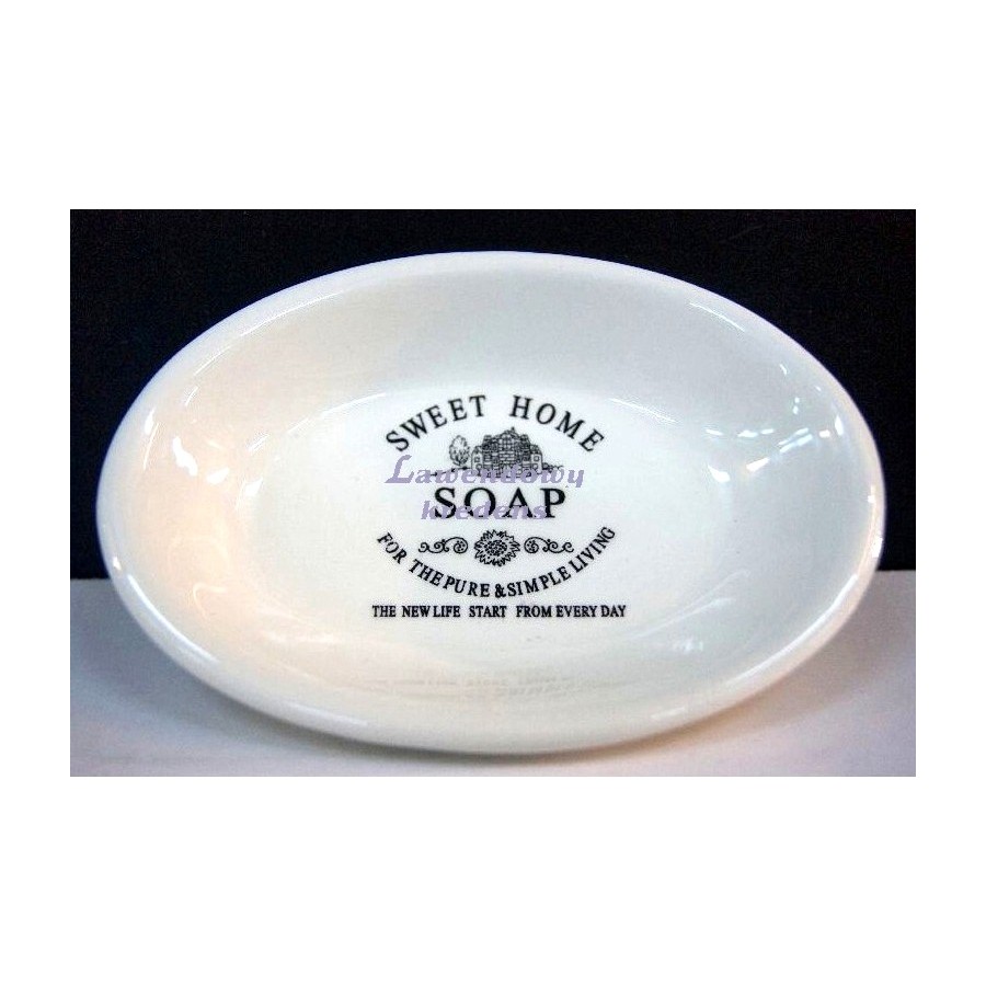 Kremowa, ceramiczna mydelniczka SWEET HOME z czarnym wzorem oraz napisami to uroczy dodatek do każdej łazienki.