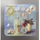 Kwadratowe, korkowe podkładki pod kubek z orchideą. Na podkładkach oprócz orchidei w doniczce znajduje się napis Orchids.