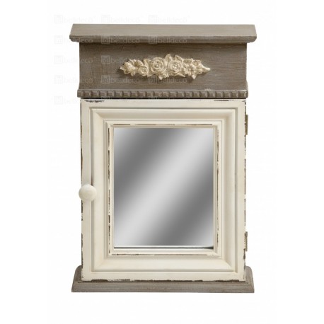 Szafka na klucze Belldeco stylizowana na styl prowansalski. Szafka wykonana jest z drewna, a w jej górnej części znajdują się rzeźbione róże.