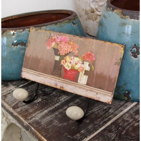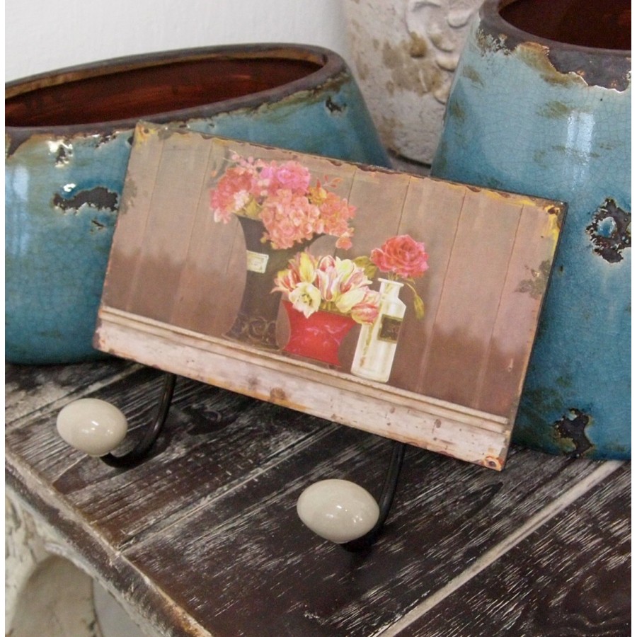 Wieszaki ścienne z kwiatowymi wzorami to praktyczne prowansalskie dekoracje, które przydadzą się w każdej kuchni, łazience czy przedpokoju. Nasze wieszaki ścienne w stylu prowansalskim wykonane są z metalu, więc są bardzo solidne. Zostały zrobione techniką decoupage i widnieje na nich uroczy obrazek o ciepłych, pastelowych barwach. Do zawieszenia wieszaków na ścianie służą dwa uchwyty.