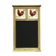 Tablica do pisania kredą z rustykalnym elementem dekoracyjnym w górnej jej części - wizerunkiem kogutów.