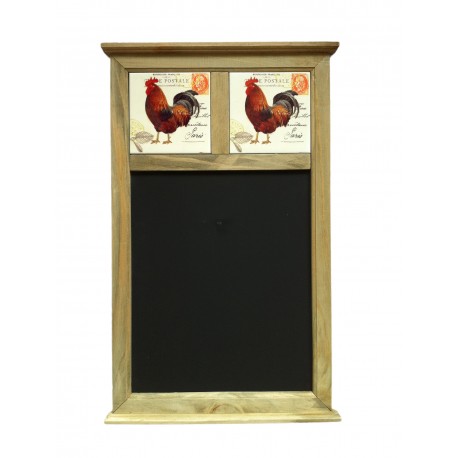 Urocza tablica w stylu prowansalskim, to pięknie wyglądający i niezwykle funkcjonalny przedmiot, który upiększy każdą kuchnię. Tablica posiada drewnianą ramkę oraz powierzchnię pokrytą specjalną substancją, dzięki której można pisać po niej kredą – zapisywać wiadomości do domowników lub tworzyć listę zakupów. W górnej części tablicy, znajduje się rustykalna dekoracja – są to wizerunki kogutów. Obrazki utrzymane zostały w ładnych, ciepłych barwach.