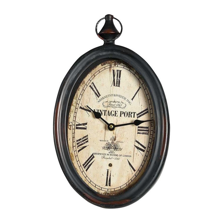 Retro Zegar Owal, czyli stylizowany i postarzany, metalowy zegar Belldeco z napisem Vintage Port idealny do wnętrz w stylu prowansalskim.
