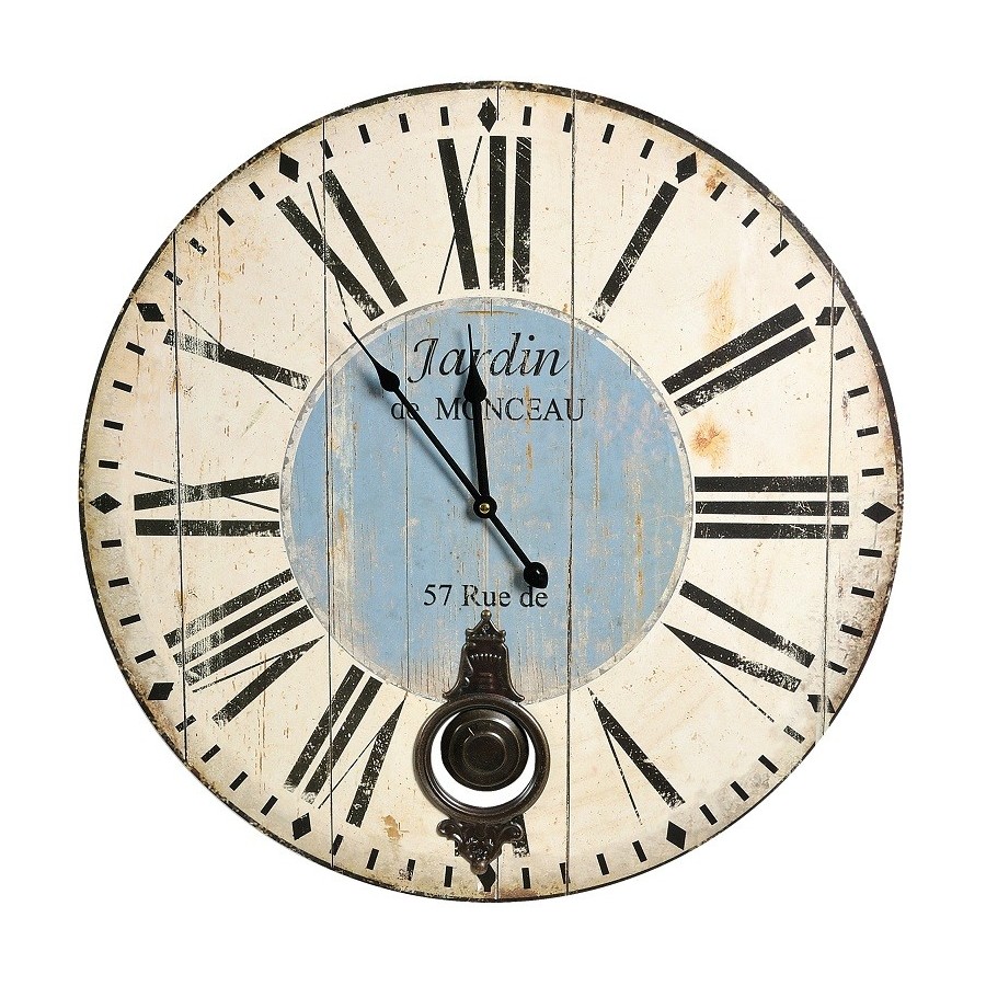 Duży Wenecja Zegar Jardin Wahadło o średnicy 58cm, czyli stylowy zegar Belldeco. Tarcza zegara jest efektownie stylizowana poprzez liczne przecierki.